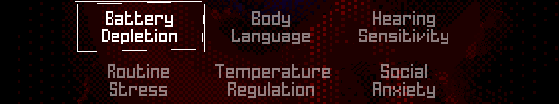 No two neurodiverse individuals are the same. Choose from a selection of traits related to a specific condition (Autism, ADHD and Anxiety) to modify your character's perspective in The Runi Islands.